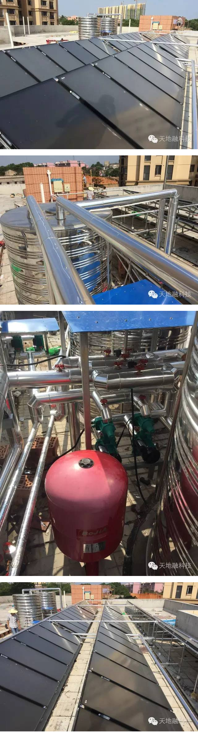 工程概況:該項目為長沙市坪塘集鎮(zhèn)片保障性住房小區(qū)北片幼兒園提供生活熱水,滿足熱水需求,設計為采用平板太陽能集熱器81塊設置了2個4m3的保溫儲熱水箱的太陽能熱水系統(tǒng)。滿足每日熱水供應,體現(xiàn)兩個最大化、一個最低化:太陽能利用最大化,熱水使用最大化,運行成本最低化;提供生活(非飲用)熱水溫度為55℃;量身打造的智能化控制功能設計確保最大程度使用太陽能;采用吸熱效率較高的平板太陽能集熱器陣列;太陽能各系統(tǒng)部件精良選材,均有產(chǎn)品檢驗報告與合格證,保證100%合格;太陽能熱水系統(tǒng)實現(xiàn)安全、可靠、高效的全自動無人值守運行。